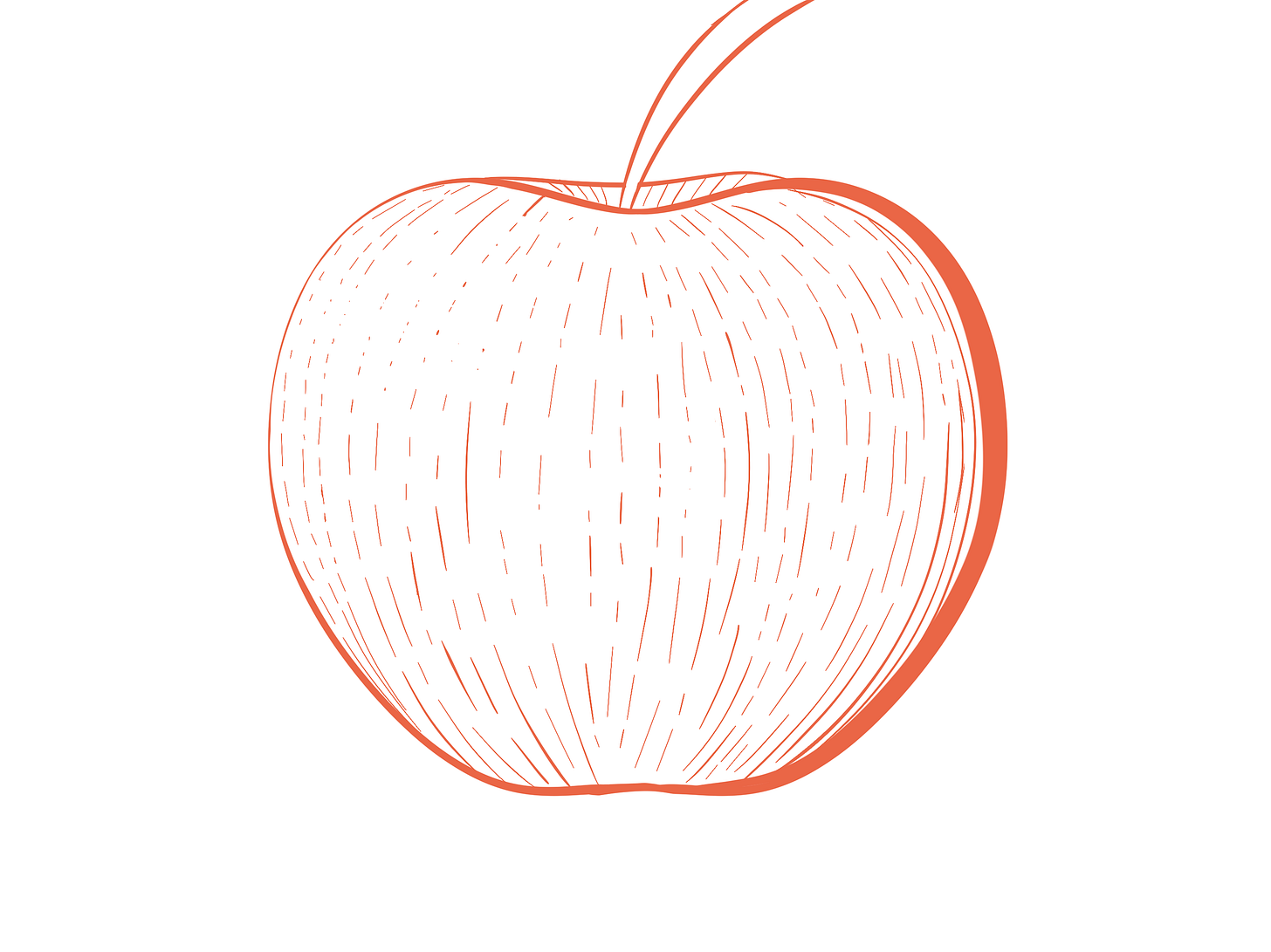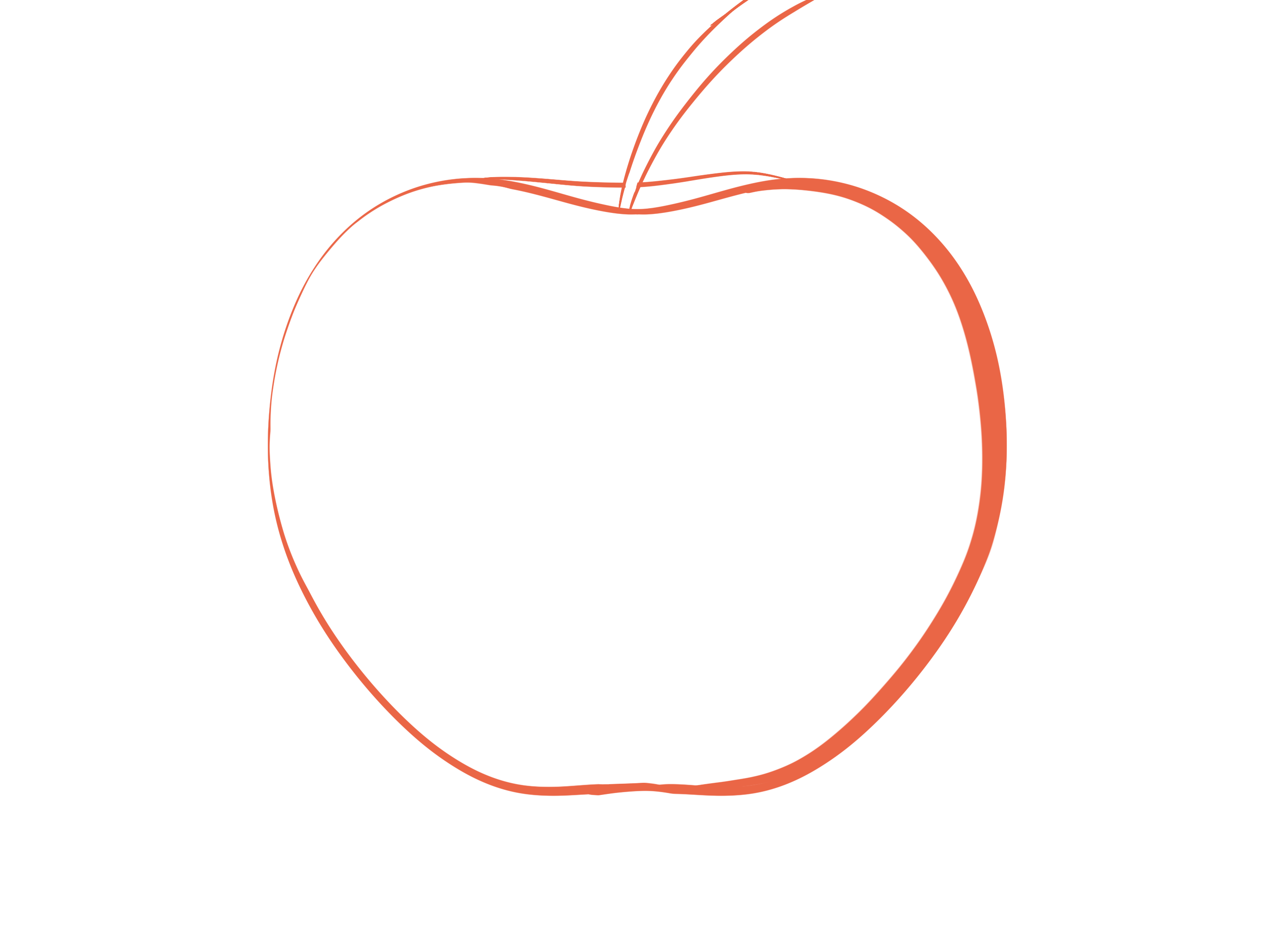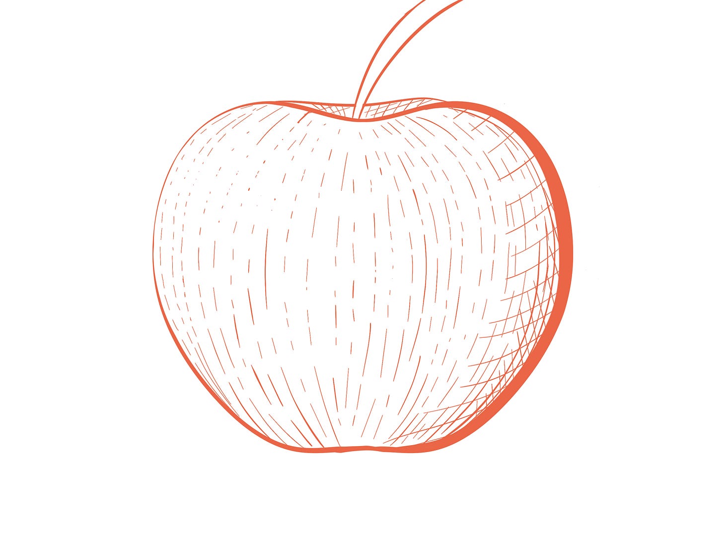 Continue the line all around the apple. Longer, darker lines give the illusion of shadow and sparse, lighter lines the light.