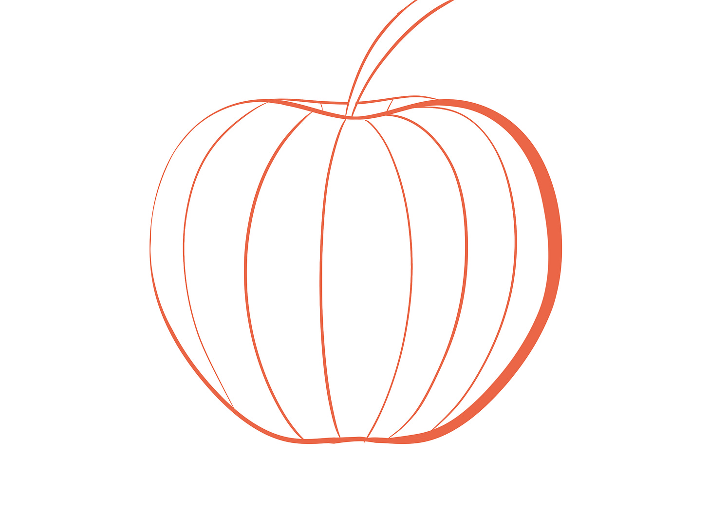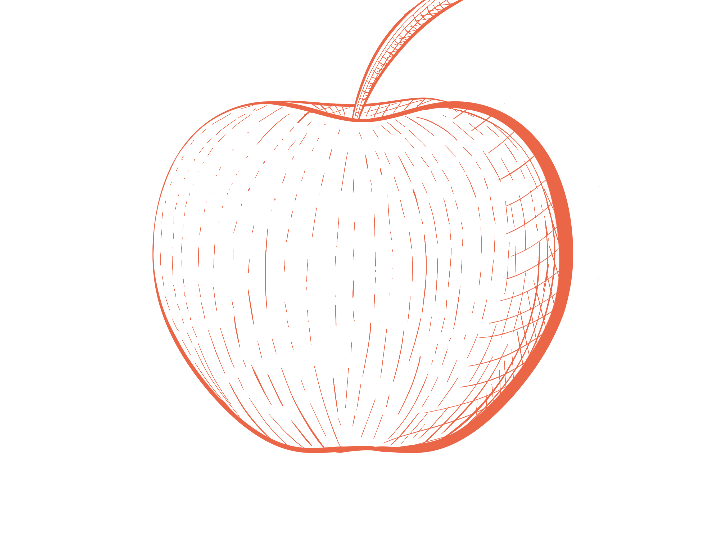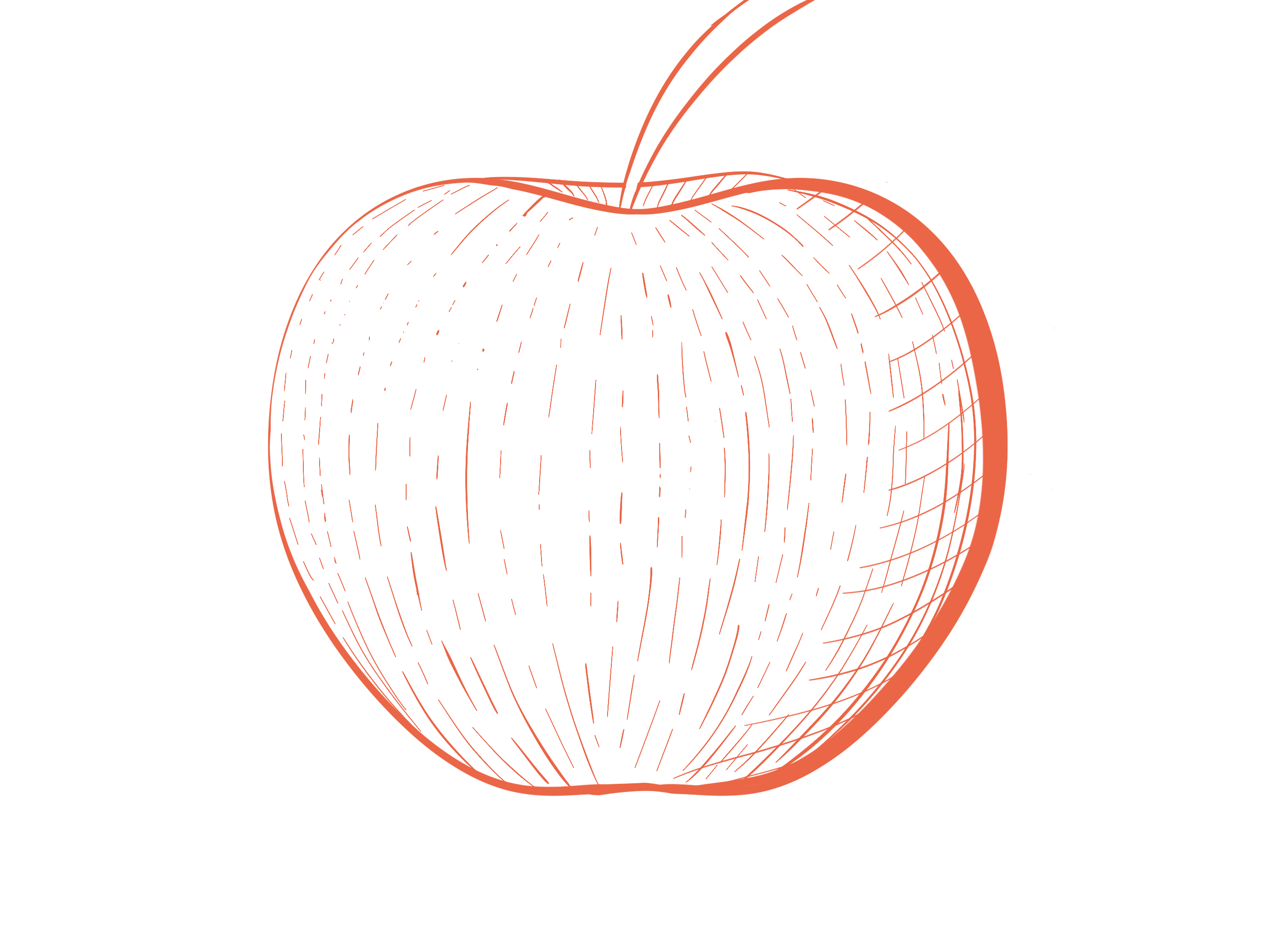 Continue the line all around the apple. Longer, darker lines give the illusion of shadow and sparse, lighter lines the light.