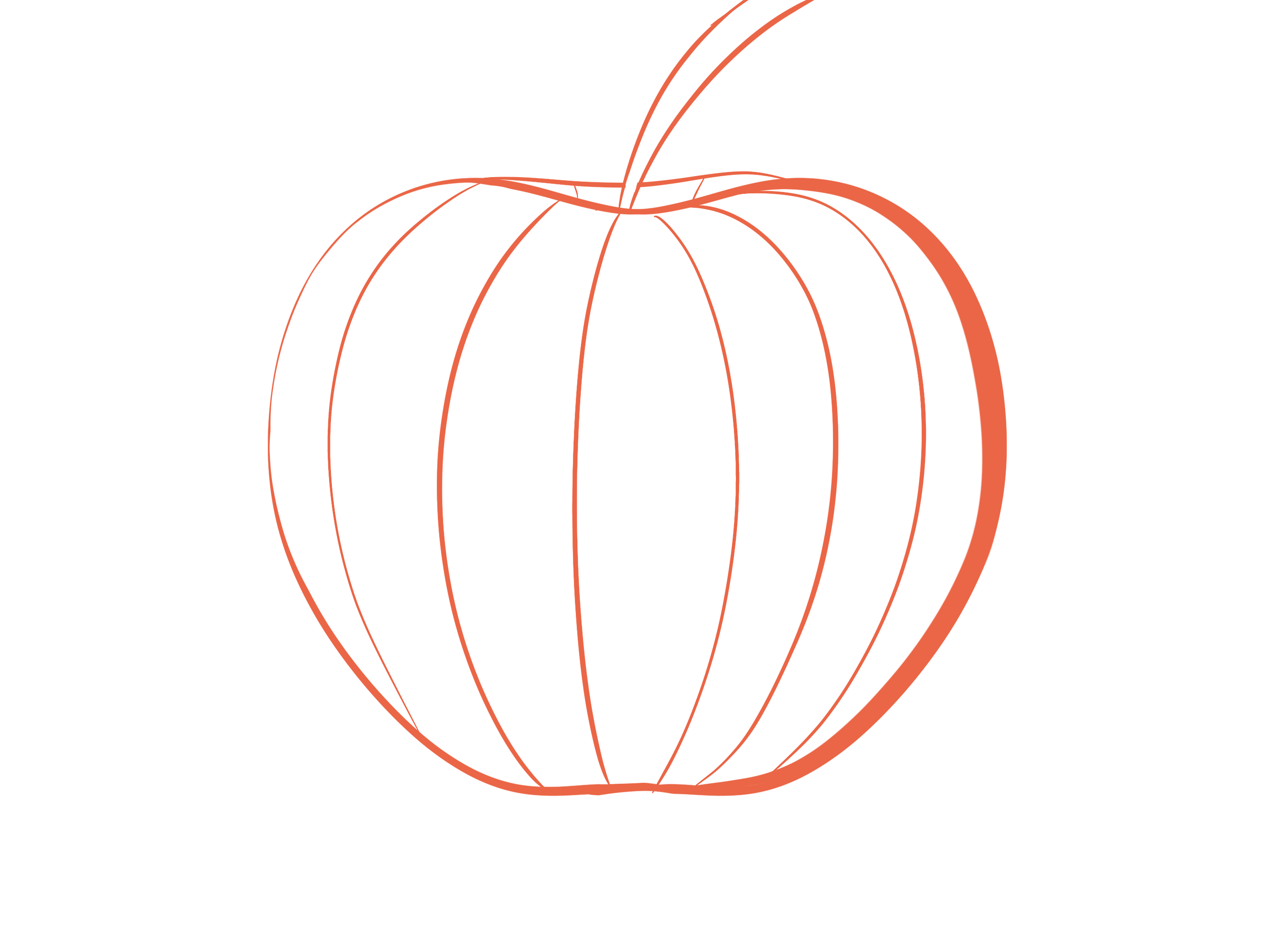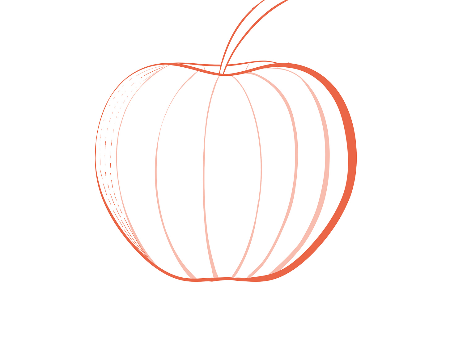 Start drawing broken lines along the form of the apple giving the illusion of a 3 dimensional piece.