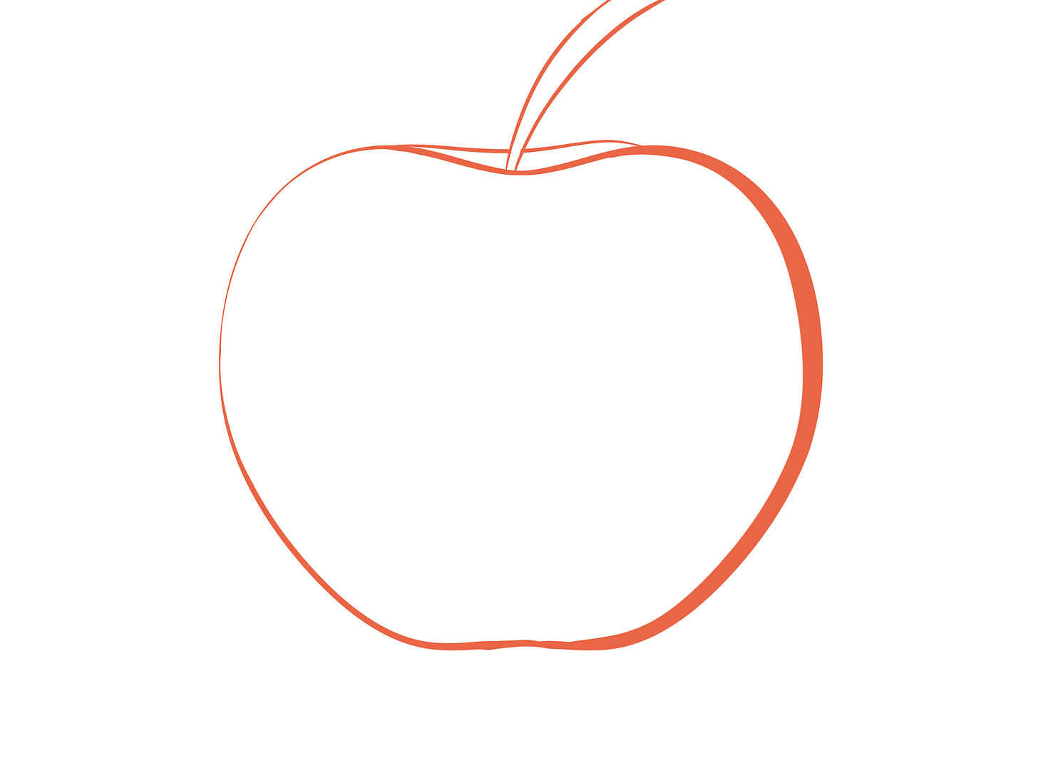 And you have a full apple with form. Just adding a few lines can define the form of any object and stands out from the rest.